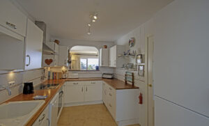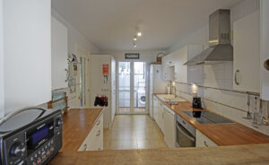 - También está allí la cocina con su lavadero, y un aseo.