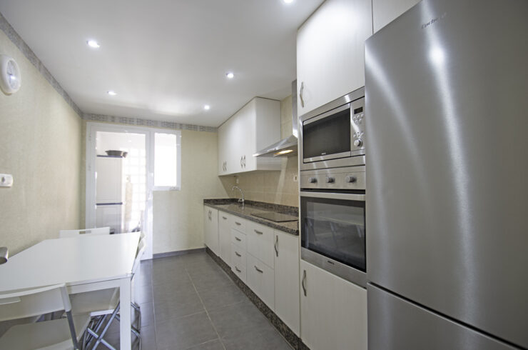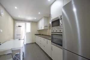 - Fully furnished kitchen equipped with appliances: Vitro-ceramic hob, oven, fridge-freezer, dishwasher, extractor hood.