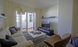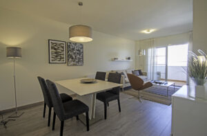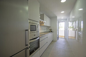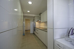 - Fully furnished kitchen equipped with appliances: Vitro-ceramic hob, oven, fridge-freezer, dishwasher, extractor hood.